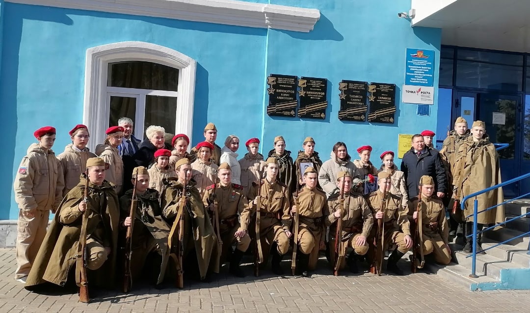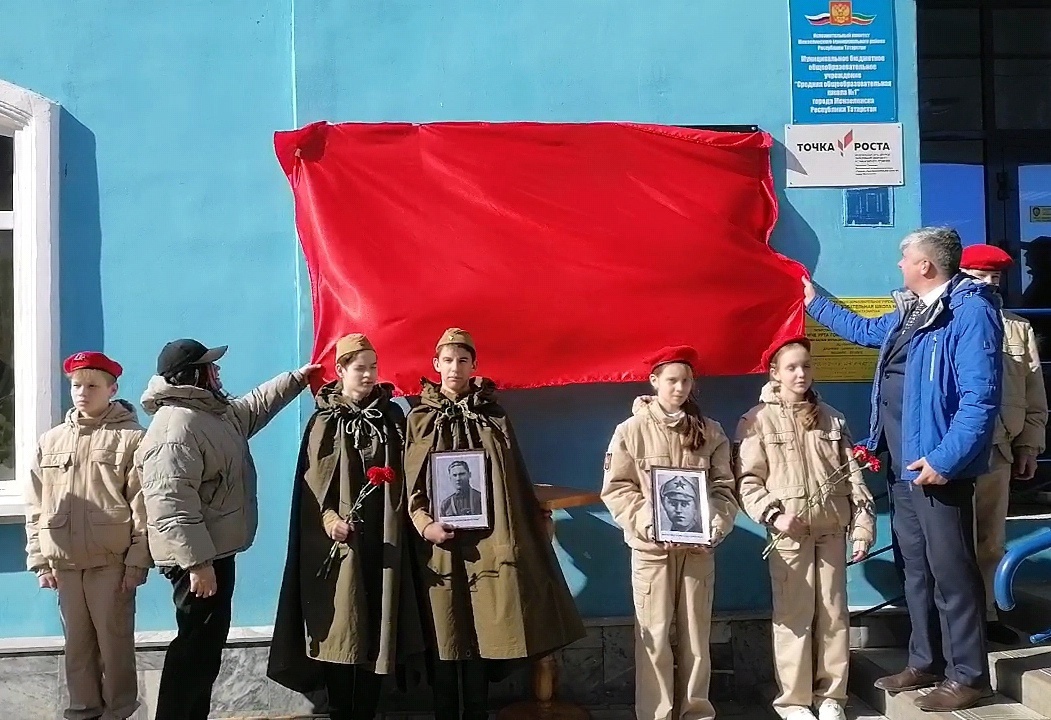 Право торжественного открытия мемориальной доски было предоставлено правнучке Героя Самиула Тапикова, ученице 8Б класса школы Виталине Елховой и Александру Александрову.