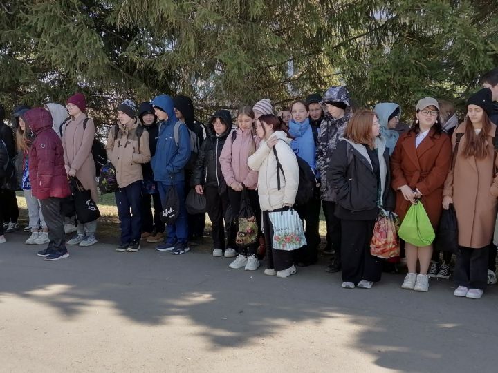 В честь героев ученики школы дали залп из исторических оружий, привезенных из Казани.