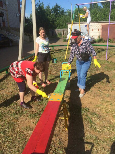 На следующий день, 1 августа на выделенные Депутатом покрасочный материал, на детской площадке собрались целыми семьями, мальчишки и девчонки не отставали от взрослых, занимались покраской скамеек, оборудованием детской площадки в яркие цвета.