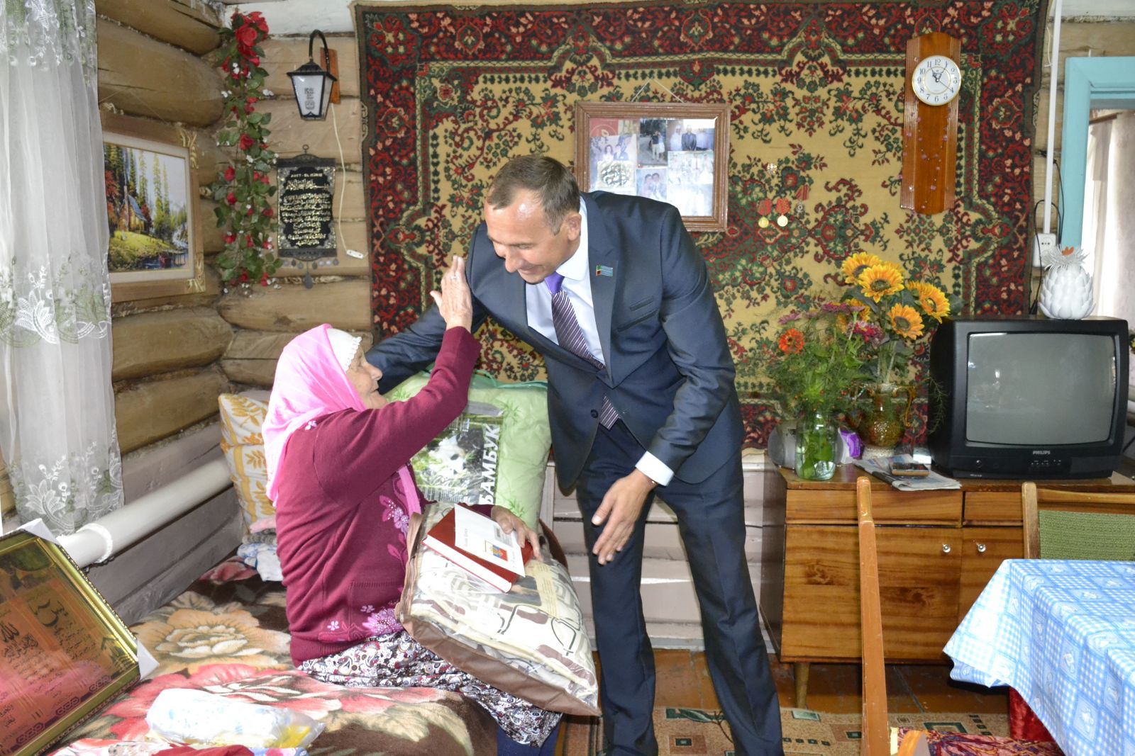 Махмуда Дияровна уроженка д. Верхний Такермень. Получила образование 4 класса. С 14 лет работала в колхозе разнорабочей. В 1954 году вышла замуж и прожила с мужем 52 года. Родила и воспитала 4 детей: 3 дочери и 1 сын. На сегодняшний день у Махмуды Дияровны 6 внуков и 7 правнуков. С юбилеем поздравить её сегодня пришли зам главы района Камиль Назмиев и глава Верхнетакерменского сельского поселения Алия Шарипова. Ей были вручены поздравительное письмо Президента РФ Владимира Путина, книга о ветеранах Великой Отечественной войне и памятные подарки.