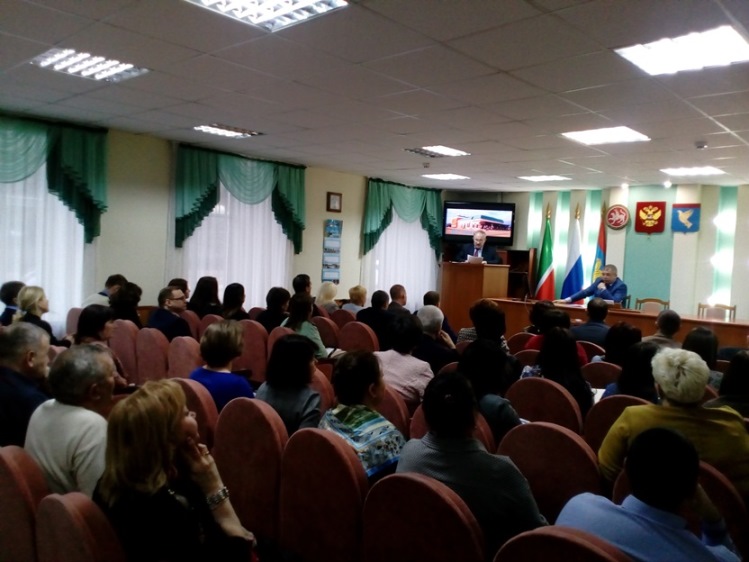 Докладчик ознакомил присутствующих с задачами, проектами и проблемами театра. Из доклада: «Благодаря проекту партии «Единая Россия» «Театры малых городов», в октябре текущего года, состоялись показы 2 премьерных постановок нашего театра. Получили Грант Правительства Республики Татарстан для поддержки лучших работников учреждений культуры, искусства и кинематографии. В октябре 2017 года по Федеральному партийному проекту «Театры малых городов» Мензелинский театр был удостоен Гранта на постановки спектаклей. Ежегодно на базе нашего театра проходит зональный фестиваль народных театров «Идел-Йорт», где участвуют: Муслюмовский, Актанышский, Сармановский, Мензелинский районы.Ежегодно на открытиях сезонов театр отмечает своих спонсоров, друзей, активных зрителей: Каримов Р.Г., Фаттахова Р.Ш., Латипова А.М., Хизбуллин Ф.Г., Юдина А.Г. и др. Театр показывает благотворительные спектакли, посвященные годовщине Великой Победы для ветеранов ВОВ города и района, ко дню Пожилых, во время декады инвалидов, сказки для детей к Международному дню защиты детей. В 2017 году, появился новый фестиваль - детский театральный фестиваль, посвященный памяти артиста и режиссера Мензелинского государственного татарского драматического театра имени С.Амутбаева Альберта Сахабутдинова.