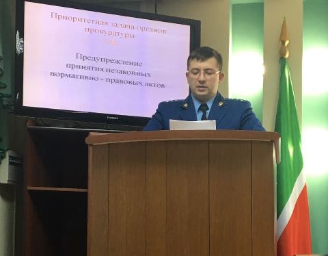 О нормотворчестве и нормативно-правовом регулировании деятельности городского и сельских поселений Мензелинского района РТ- выступил помощник прокурора Мензелинского района РТ Габдуллин Тимур Наилевич.