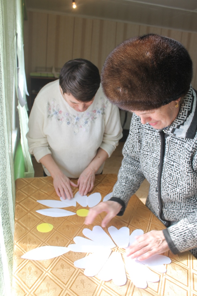 Надо улыбнуться жизни по утру»- с пожеланием хорошего настроения обратилась ко всем Салимгараева Н.Х. Организованная ею игра так же несла яркий характер: надо было составить бумажные цветы из различных деталей.