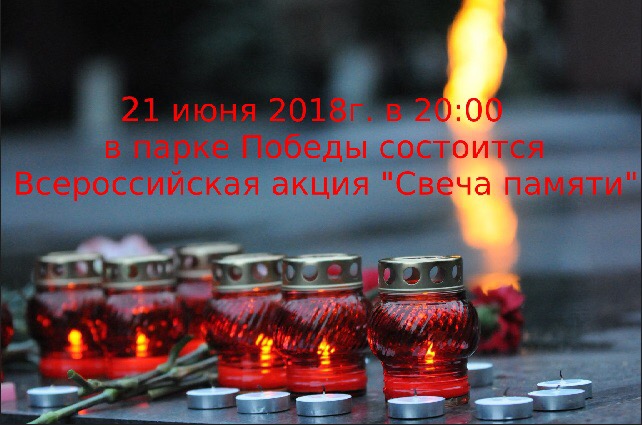 21 июня 2018 г. в 20:00 в парке «Победы»состоится Всероссийская акция «Свеча памяти».