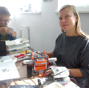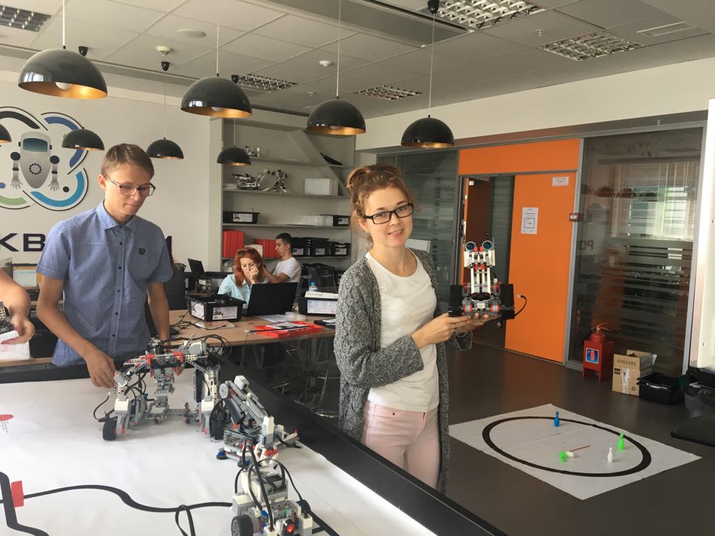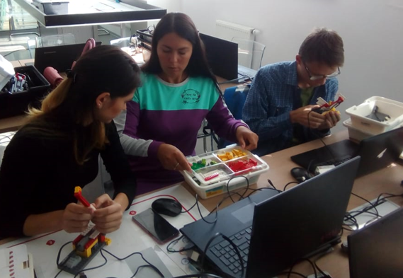 Преподаватели решали огромное количество интересных задач с повышением сложности, постигали технологии построения конструкций роботов и алгоритмов. Роботы были запрограммированы ездить по черной линии, останавливаться на перекрестках, объезжать препятствия, реагировать на цвета, управляли одним роботом через другого.