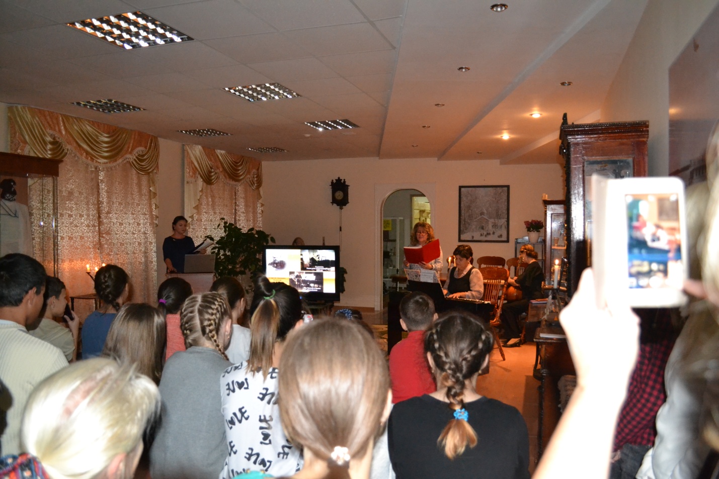 Затем гости побывали на Встрече при свечах в литературно-музыкальной гостиной «Музыка и Великий Гений слова», посвященной 190 –летию со дня рождения Л.Н.Толстого, с участием преподавателей и учащихся Детской школы искусств