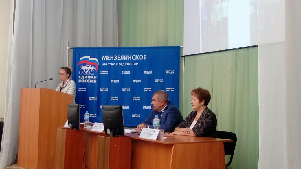Было акцентировано внимание на то, что в рамках реализации федерального проекта «Экология России» и проекта Мензелинского местного отделения партии «Чистый город – своими руками» была организована очистка и уборка береговых зон города Мензелинск, проведены масштабные работы по благоустройству скверов, парков, посадок, цветников. Проведены общегородские субботники по уборке территорий, посажены деревья и кустарники. Осенью этого года практически все депутаты приняли участие во Всероссийской акции «Посади дерево», где были посажены более тысячи саженцев для озеленения города и района. Проект партии "Уютный дворик" жители приняли с одобрением. Она сказала, что местное отделение принимало активное участие во всех Всеросиийских акциях партии, дала высокую оценку работе молодежного крыла партии "Единая Россия" – это Молодая Гвардия, руководитель Екатерина Мороз.
