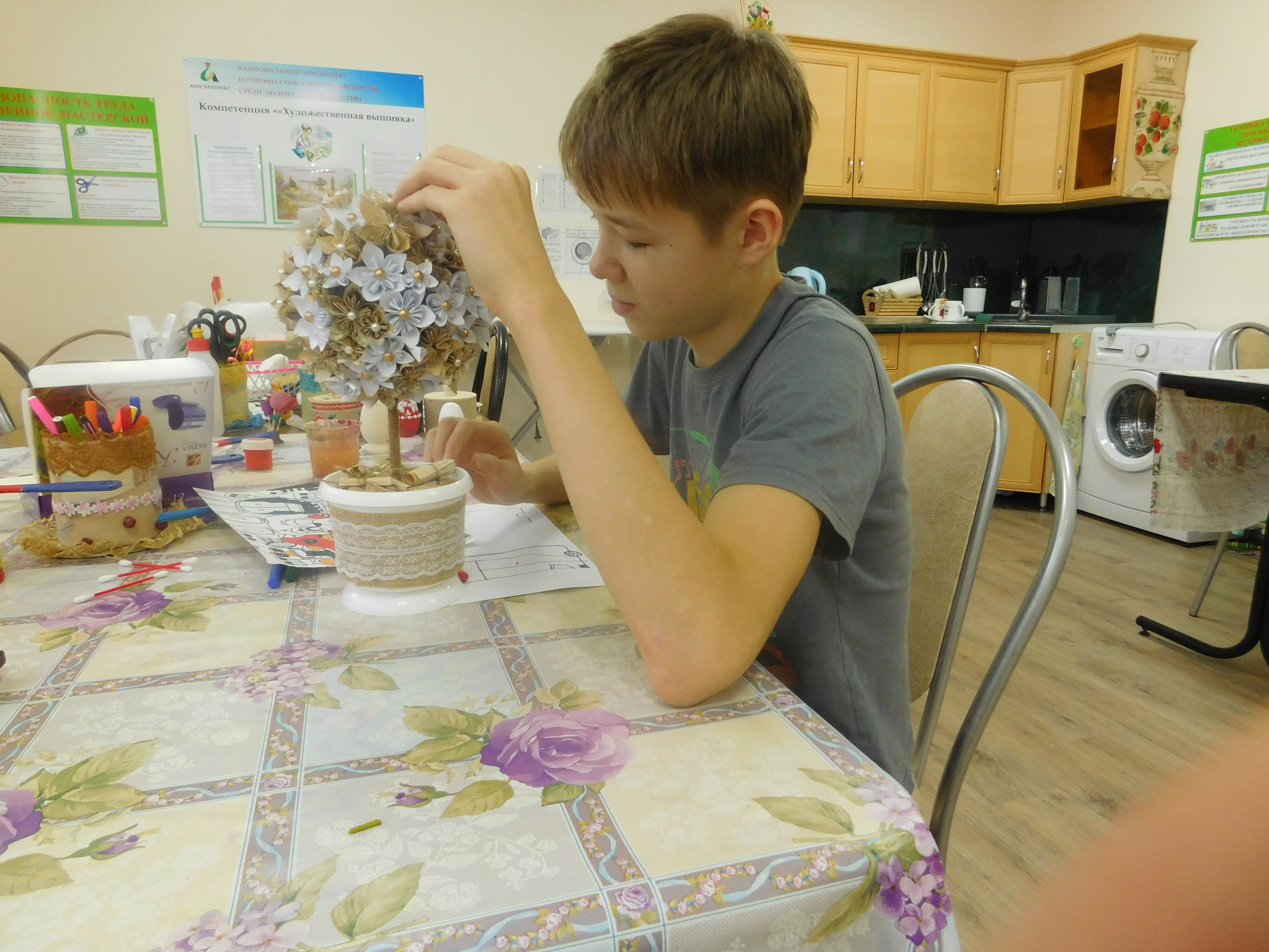 В рамках Республиканского проекта «Сможем вместе» в комнате социально-бытовой реабилитации реабилитанты реабилитационного центра «Умырзая» занимаются модульным оригами. С помощью обычной бумаги и клея создали топиарий.