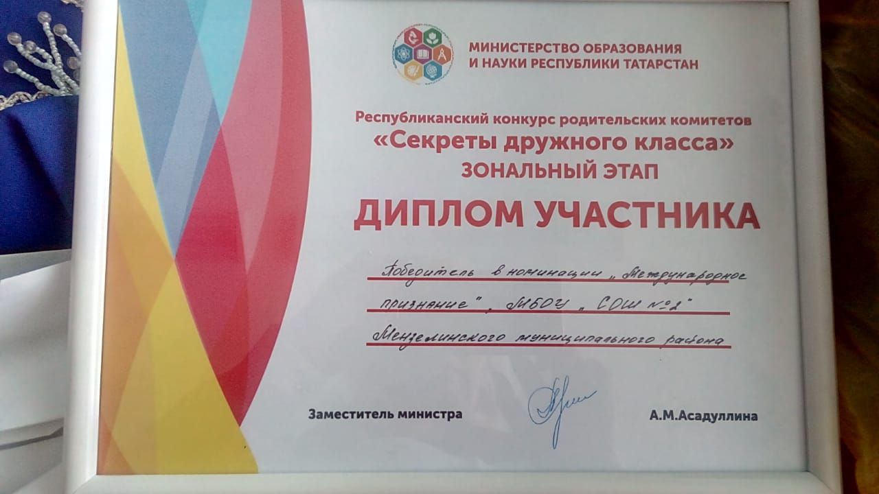 Мензелинский муниципальный район на конкурсе представлял общешкольный родительский комитет МБОУ "СОШ №2" г. Мензелинска - Победители муниципального этапа конкурса.