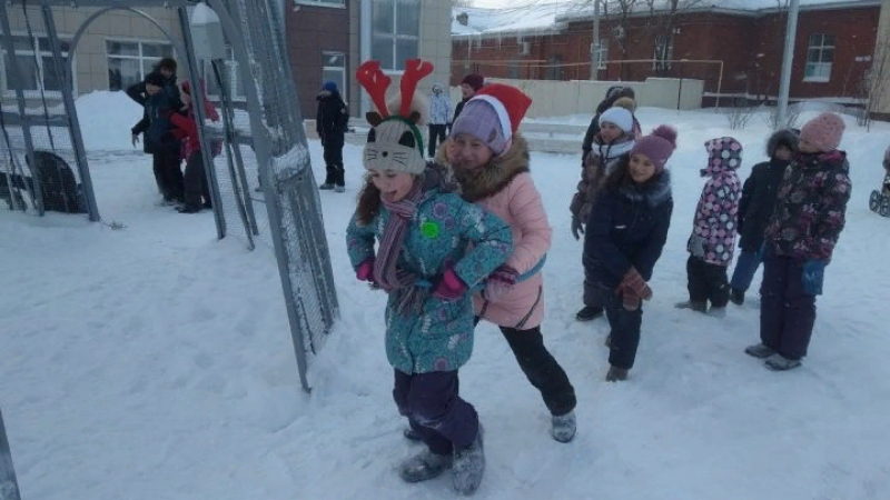 В командных играх эстафета на санках, хоккей с шайбой присутствовал соревновательный дух. Никто не ушел без сладких подарков.