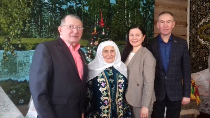 Сегодня Валеева Мусаллия Галиевна отметила свой 90-летний юбилей. Поздравить труженицу тыла, ветерана труда с этим знаменательным днем пришли руководитель аппарата Совета района Эльвира Хабибуллина, глава Кадряковского сельского поселения Халиль Набиуллин, председатель Совета ветеранов поселения Фаяз Камалов. Эльвира Хабибуллина передала открытку с теплыми словами поздравлений и благодарности от Президента Российской Федерации Владимира Путина, а также памятный подарок от главы района Айдара Салахова. Почетные гости пожелали имениннице бодрости духа, мира, благополучия, душевного тепла, внимания и заботы родных и близких людей, а также крепкого здоровья. Выразили огромную благодарность за самоотверженный многолетний и добросовестный труд.