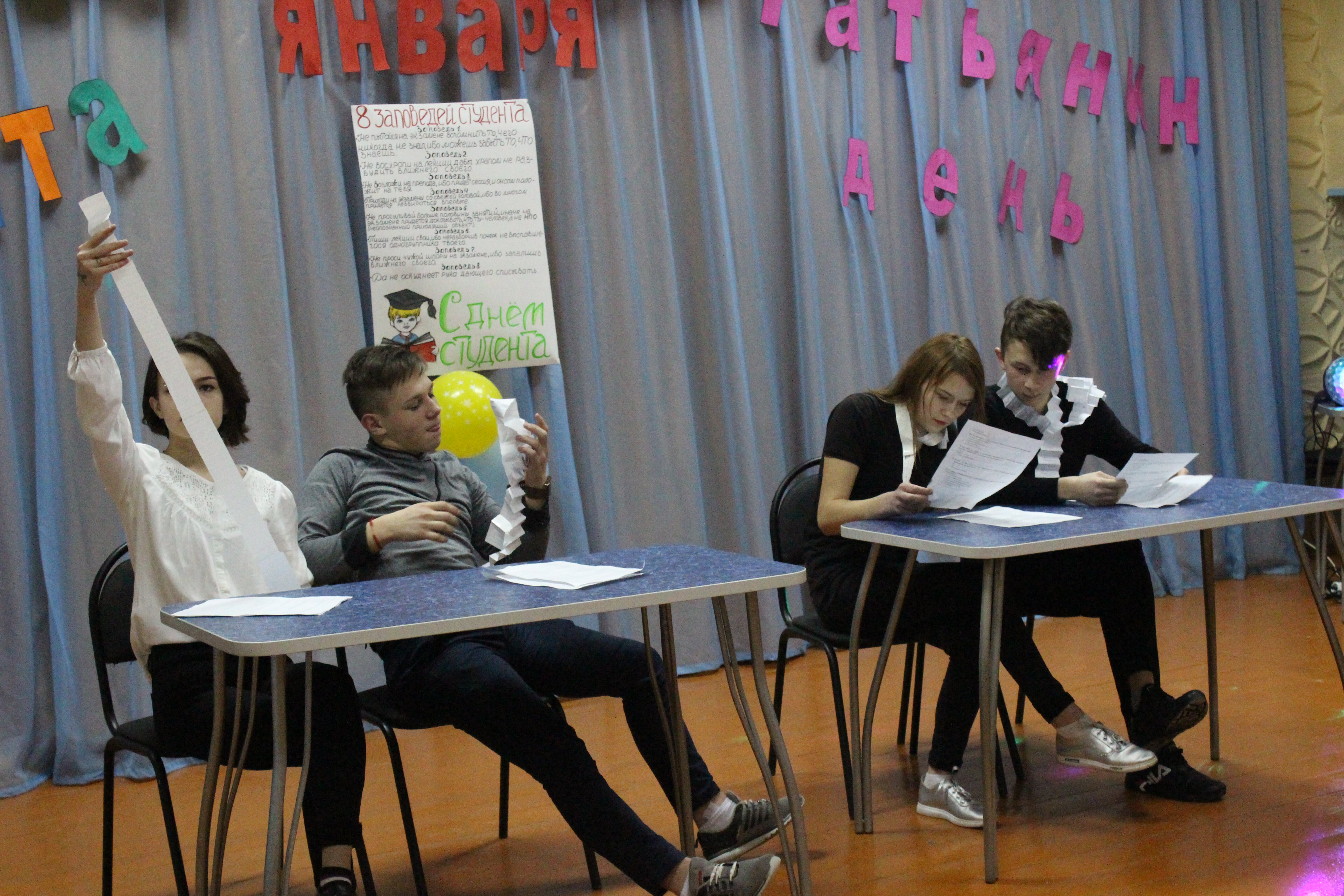 И накануне этого дня в многопрофильном молодежном центре "Веста" города Мензелинска, прошла дружеская встреча команд студентов Мензелинских средних специальных учебных заведений. Напутственными словами и пожеланиями поприветствовал студентов руководитель МКУ "Отдела по делам молодежи и спорту" Фаяз Гумарович Хизбуллин. Студенты с большим мастерством и энтузиазмом продемонстрировали свои творческие и интеллектуальные возможности. Времена меняются, меняются традиции празднования Татьяниного дня, но не меняется суть праздника, он остаётся одним из любимых дней студентов. Это праздник всех тех, кто независимо от национальности и возраста чувствует в себе дух студенчества. И пусть этот праздник всегда будет наполнен чувством радости, веселья и шуток.