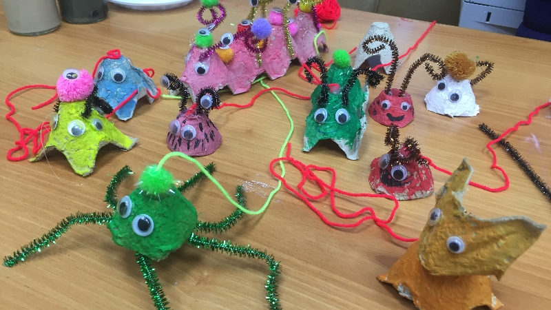 Отличительной особенностью занятий театрального кружка является то, что они дают возможность каждому ребёнку с разными способностями реализовать себя. Персонажи сказки, которую дети сочинили сами выполнены руками детей.