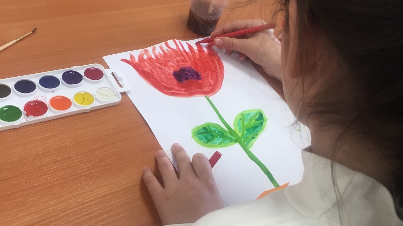 В рамках реализации программы «Слушай себя и познаешь мир» психологом Мензелинского КЦСОН Нерике Екатериной было проведено очередное занятие с детьми 9-12 лет по освоению техники быстрого рисования - акварель композиция «Маки».