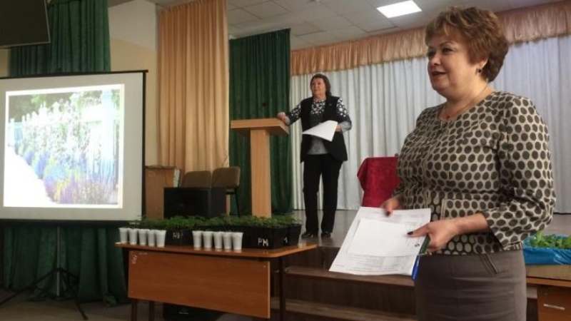 Обучение провела заместитель директора по практическому обучению, преподаватель агрономических дисциплин –Выборнова Т.Д. Она ознакомила с правилами посадки и пересадки цветов, планировки, формами и видами цветников, желаемом ассортименте и правилами ухода за цветами. Собравшихся ознакомили в форме презентации с правилами цветового сочетания и восприятия цвета.