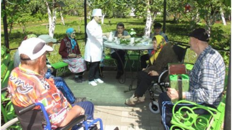 По социальной технологии «Кулинарная школа» 29 мая в Мензелинском доме-интернате для престарелых и инвалидов специалист по социальной работе и медсестра вместе с проживающими приготовили смородиновый чай.