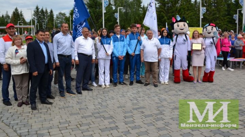 Торжество состоялось в парке имени Мусы Джалиля. Здесь собрались учащиеся школ, студенты среднеспециальных учебных заведений, представители учреждений и предприятий района. Со словами приветствия выступила глава района Айдар Салахов. Айдар Фаслахович прикрепил на флаг WorldSkills Казань-2019 нашивку - герб Мензелинского района в знак того, что здесь прошла эстафета Флага WorldSkills.