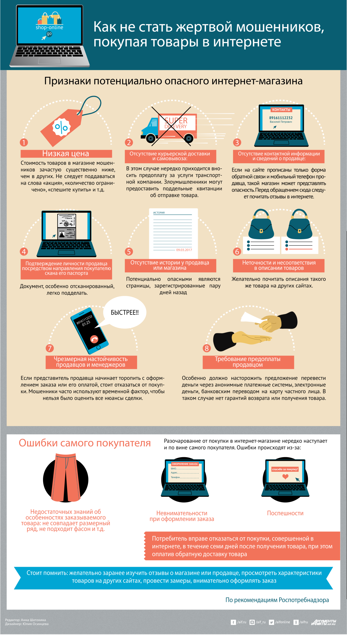 Самой часто встречающейся причиной разочарования в интернет-покупках, как ни странно, являются ошибки самого покупателя. Чаще всего это бывает связано либо с недостаточными знаниями покупателя об особенностях заказываемого товара, либо с банальной невнимательностью и поспешностью при оформлении заказа.