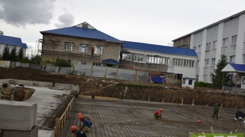 Например, где будут размещен комплекс спортивных площадок и где будет ПДО стройку ведут с учетом, что подземные воды близки к поверхности. В больнице для спасения от грунтовых вод под фундамент приемно-диагностического отдела сделали пирог из нескольких слоев бетона. А на спортивной площадке, размещенной в поселке Нефтяников, водоотвод будут делать с помощью труб. Для этого на этой территорией под землей положат трубы с проколами, их соединят межсобой и грунтовые воды будут выводиться дальше по каналам.