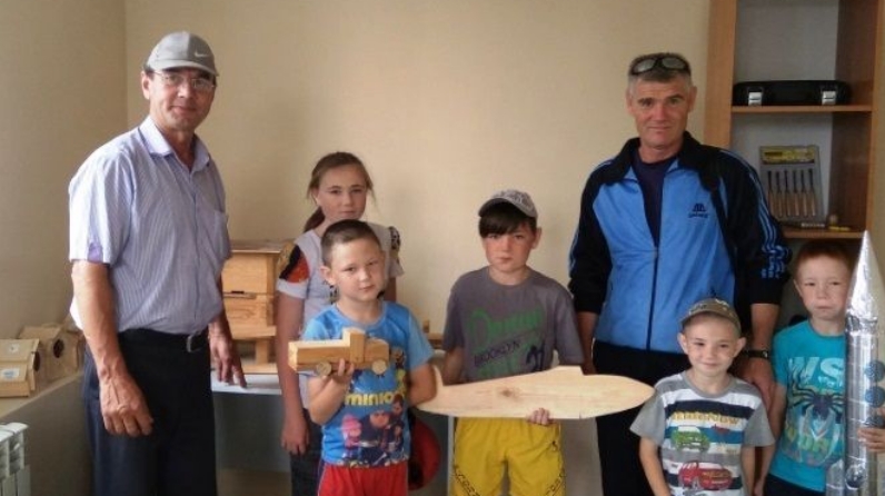 Братья Шараповы, которые недавно прибыли в приют, охотно занимаются столярным делом, любят мастерить разные поделки из древесины. Дима уже научился многому, приобрел навыки работы с простыми ручными инструментами и показал младшим братьям способ изготовления самолета из деревянных досок. Отец детей, Алексей Валерьевич, который постоянно поддерживает связь с детьми, часто посещает их в приюте, интересуется их достижениями, тоже принял участие в мероприятии. Дети с удовольствием показали ему свои увлечения, поделки и поделились своими успехами.