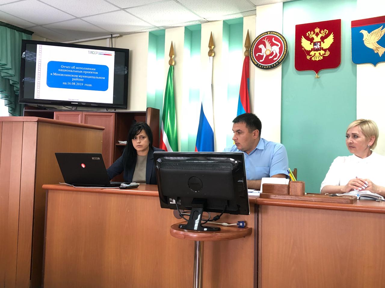 Сегодня, 16 августа, состоялось очередное заседание рабочей группы по контролю за исполнением национальных проектов в Республике в режиме видеоконференции. И.о. заместителя главы Мензелинского муниципального района Наиль Хисамбеев выступил с отчетом об исполнении национальных проектов в Мензелинском муниципальном районе по состоянию на 16.08.2019 года.