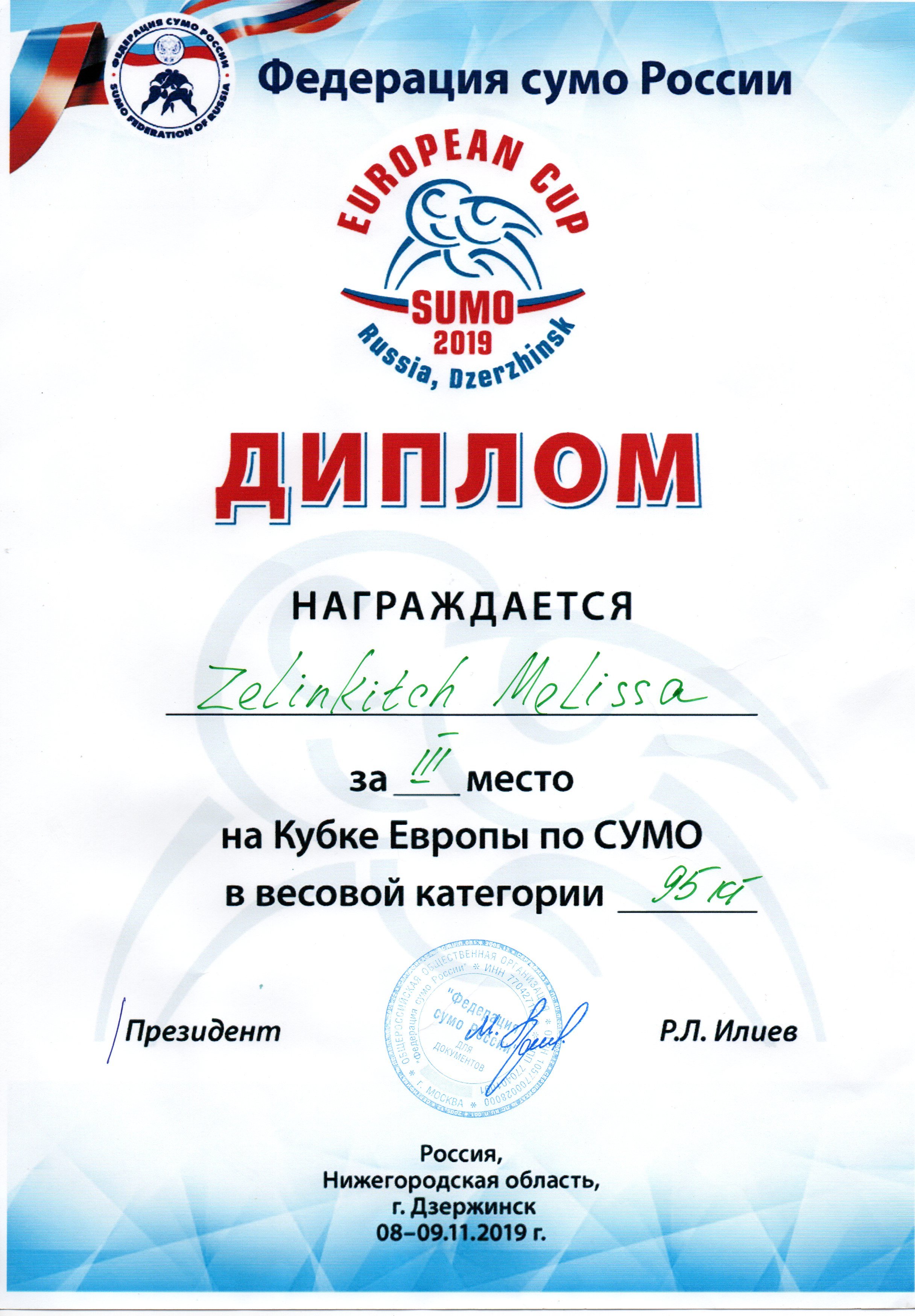 В начале ноября в г. Дзержинск (Нижегородская область) состоялись соревнования на Кубок Европы по сумо среди мужчин и женщин, организованные федерацией сумо России и Федерацией сумо Нижегородской области.