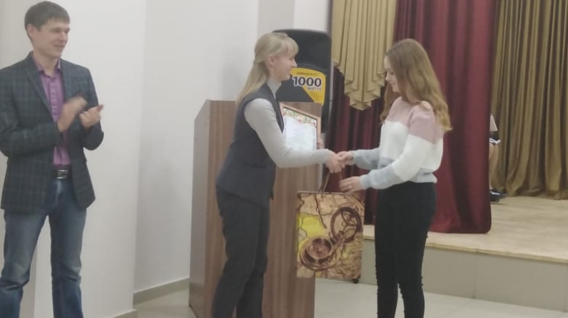 29 ноября 2019г., в торжественной обстановке, на мероприятии, посвященном Дню матери в СОШ № 2, директор Мензелинского КЦСОН Наталья Елхова поздравила Аделину, девочку из многодетной семьи, и вручила грамоты и подарки.