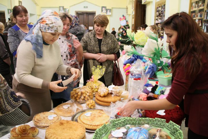 В фойе театра были представлена выставка поделок, сделанных руками воспитанников детских садов, Дома детского творчества, реабилитационного центра «Умырзая», детского приюта «Тургай» в селе Старая Матвеевка, учащихся городских школ. Не остался в стороне от этого мероприятия и районный Дворец культуры, они привезли различные сладости и разнообразные поделки, сделанных посетителями кружков сельских клубов. Некоторые пришедшие на праздник люди приобрели поделки, картины. К примеру, руководитель ООО «Мензелинсксервис» Егор Юдин приобрел товары на сумму 15 тысяч рублей и оставил специальный заказ для реабилитационного центра «Умырзая».