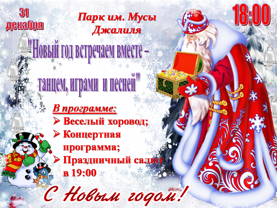 31 декабря, в 18 часов, начнется праздничная программа, а в завершение праздника запустят новогодний фейерверк.