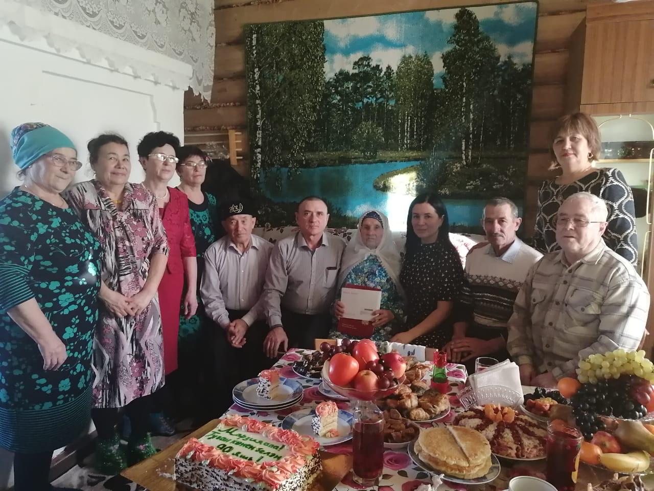 В день своего 90-летнего юбилея принимала поздравления жительница деревни Новое Айманово, труженица тыла, ветеран труда Фатихова Марзия Фатиховна. В этот день в адрес юбилярши прозвучало много добрых слов, пожеланий добра, здоровья и благополучия. С днем рождения именинницу поздравили руководитель аппарата Эльвира Хабибуллина и глава Атряклинского сельского поселения Рустам Газизянов. По уже доброй сложившейся традиции гости вручили юбиляру приветственные адреса и подарки от Президента России Владимира Путина и главы района Айдара Салахова.