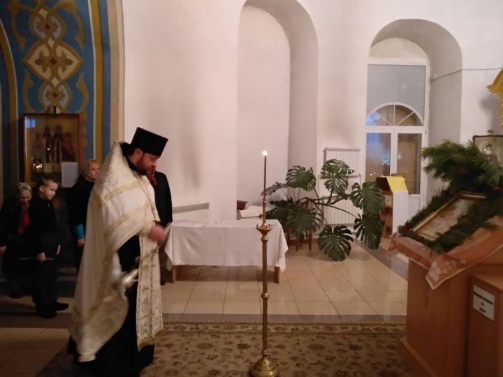 Православные жители г. Мензелинск собрались в Никольском кафедральном соборе и Казанско-Богородицкой церкви, чтобы принять участие в праздничном богослужении накануне Рождества.