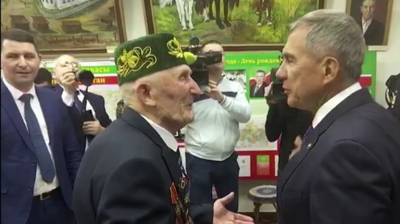 Президент Татарстана Рустам Минниханов сегодня посетил краеведческий музей «Дружбы народов» в Балтасинском районе РТ. С экспозицией музея руководителя республики ознакомил директор учреждения, ветеран Великой Отечественной войны Гарифзян Галиев.