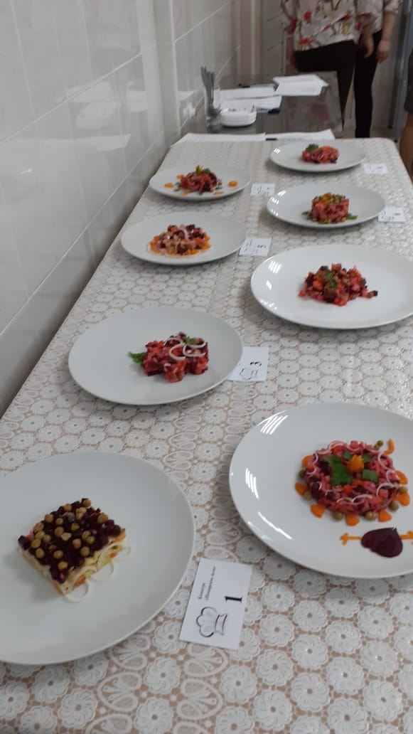 В рамках месячника дисциплин естественнонаучного цикла в ГАПОУ «Мензелинский сельскохозяйственный техникум» 21 февраля состоялся мастер-класс по компетенции «Поварское дело». Свои практические умения и навыки по приготовлению салата «Винегрет овощной» показали 8 студентов 2-го курса профессии "Повар, кондитер". Участники разработали технологические карты, состоящие из расчета одной порции блюда. Работа студентов оценивалась по следующим критериям: организация рабочего места, первичная обработка продуктов, соблюдение технологии нарезки, оформление, подача блюда. По результатам конкурса были присуждены 3 призовых места, 2 номинации, 2 участника получили сертификаты.