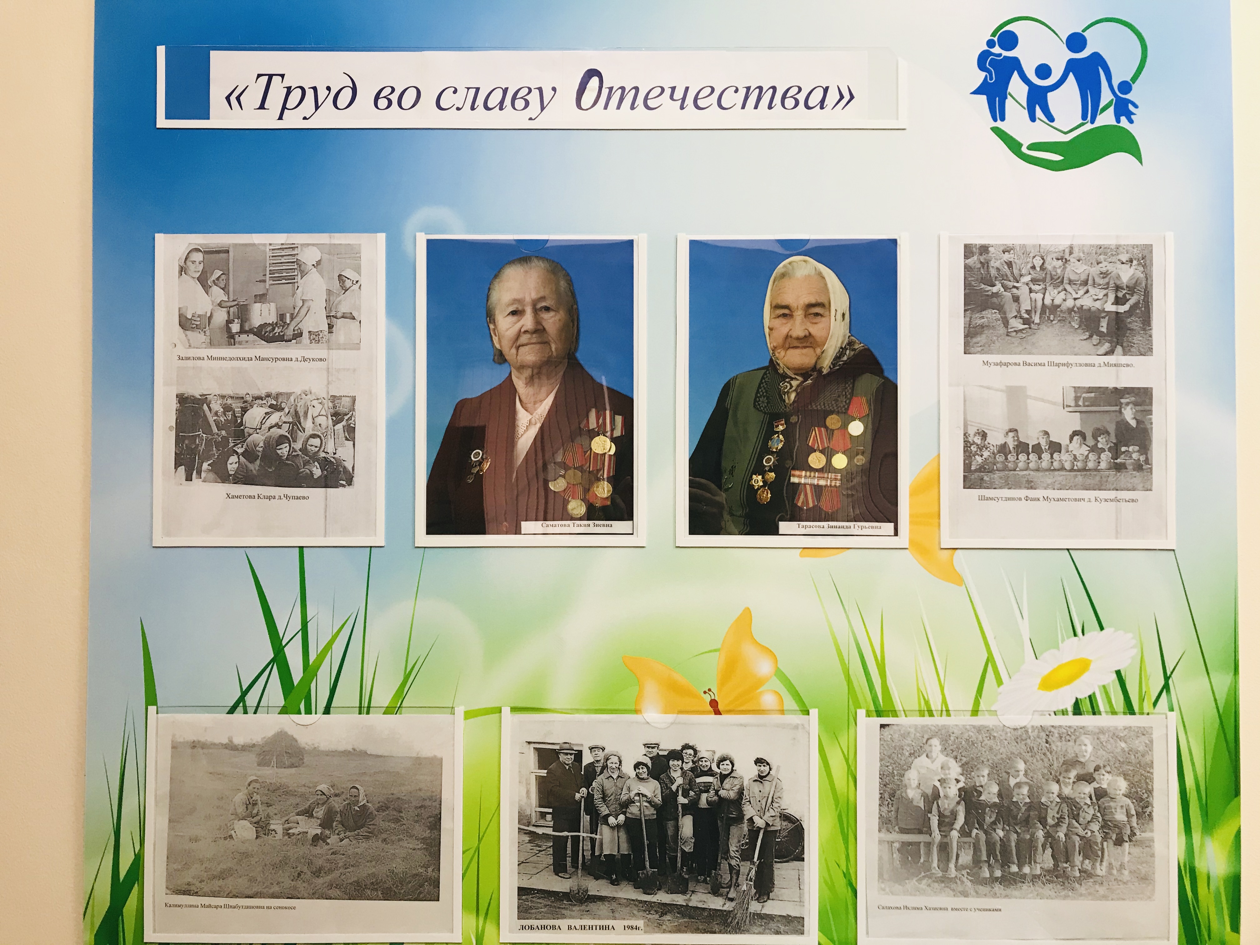 В рамках подготовки празднования исторических событий - 100-летия образования ТАССР и 75-й годовщины Победы в Великой Отечественной войне 1941 – 1945г.г. специалистом по работе с семьей Комплексного центра социального обслуживания населения в Мензелинском муниципальном районе Бывальцевой Ольгой для жителей Мензелинского района и получателей социальных услуг в марте месяце был оформлен стенд о женщинах, внесших вклад в развитие Мензелинского района «Труд во славу Отечества». Представленные фотографии рассказывают о трудовом пути наших земляков, участников ВОВ, отражают исторические события послевоенного времени: восстановление народного хозяйства, социально-экономическое развитие района.