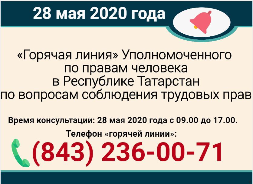 28 мая 2020 года с целью оказания правовой поддержки и обеспечения соблюдения прав граждан Уполномоченный по правам человека проводит «горячую линию» по вопросам защиты трудовых прав граждан республики.