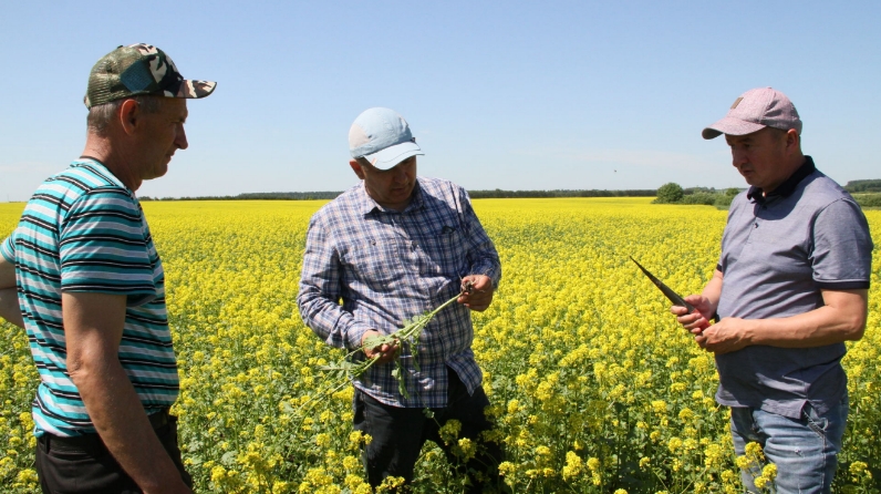 (Мензелинск, Дильфас Галиев, "Мензеля-информ") Глава района Айдар Салахов, начальник управления сельского хозяйства и продовольствия района Ильфар Халиков и консультант управления по земледелию Равиль Сайфиев осмотрели поля района. Осмотр полей района начали с Мушугинского отделения агрофирмы «Аняк», здесь отделение выращивает зерновые основываясь на научных данных. Напоминаем, что это отделение в прошлом году получило рекордный урожай с 1 гектара – 45 центнеров. В отделении на выращивание зерновых на 1 гектаре тратится 37 тысяч рублей, - сказал управляющий отделением Камиль Шаймарданов. В ближайшие дни здесь начнут использовать специальный препарат для защиты озимой пшеницы от болезней. Достойно внимания и поле рапса, раскинувшееся на 323 гектарах. На этом поле они планируют получить урожайность 27 центнеров с 1 гектара. На выращивание 1 гектара рапса используется 11 тысяч рублей, причем расходы покрываются уже при урожайности 10 центнеров с 1 гектара.