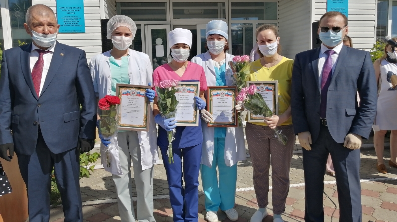 Сегодня, 19 июня, на территории ГАУЗ «Мензелинская ЦРБ» состоялось торжественное мероприятие, приуроченное к профессиональному празднику — Дню медицинского работника. В нем приняли участие глава района Айдар Салахов, депутат Государственного Совета Республики Татарстан 6 созыва Азат Хамаев, руководитель Исполнительного комитета района Камиль Назмиев, главный врач ГАУЗ «Мензелинская ЦРБ» Наиль Мубаракшин, председатель профкома ГАУЗ «Мензелинская ЦРБ» Валентина Баева, руководители предприятий города, медицинские работники. Глава района Айдар Салахов поздравил медработников и вручил им Благодарственные письма и Почетные грамоты за добросовестный и плодотворный труд в системе здравоохранения. Также наградили сотрудников организаций и предприятий за оказание помощи в благоустройстве территории ГАУЗ «Мензелинская ЦРБ». В завершении мероприятия сотрудники многопрофильного молодежного центра «Веста» выступили с концертными номерами.