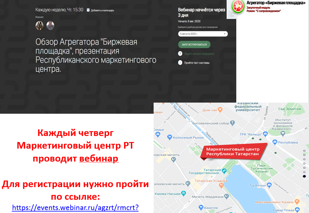 Для обеспечения малому бизнесу доступа к рынку поставок, размещение закупок с использованием ресурсов Республиканского Маркетингового центра совместно с представителями Министерства экономики еженедельно (каждый четверг) проводятся обучающие вебинары. Принять участие в вебинарах может любой участник. Число слушателей вебинаров неограниченно. Для регистрации нужно пройти по ссылке: https://events.webinar.ru/agzrt/rmcrt?.