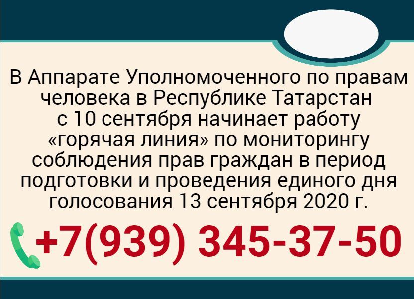 В Аппарате Уполномоченного по правам человека в Республике Татарстан с 10 сентября 2020 года начинает работу «горячая линия» по мониторингу соблюдения прав граждан в период подготовки и проведения единого дня голосования 13 сентября 2020 г.