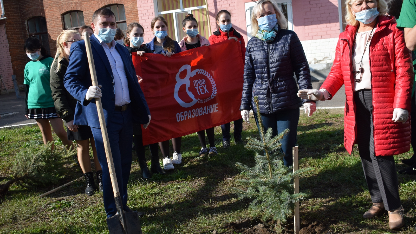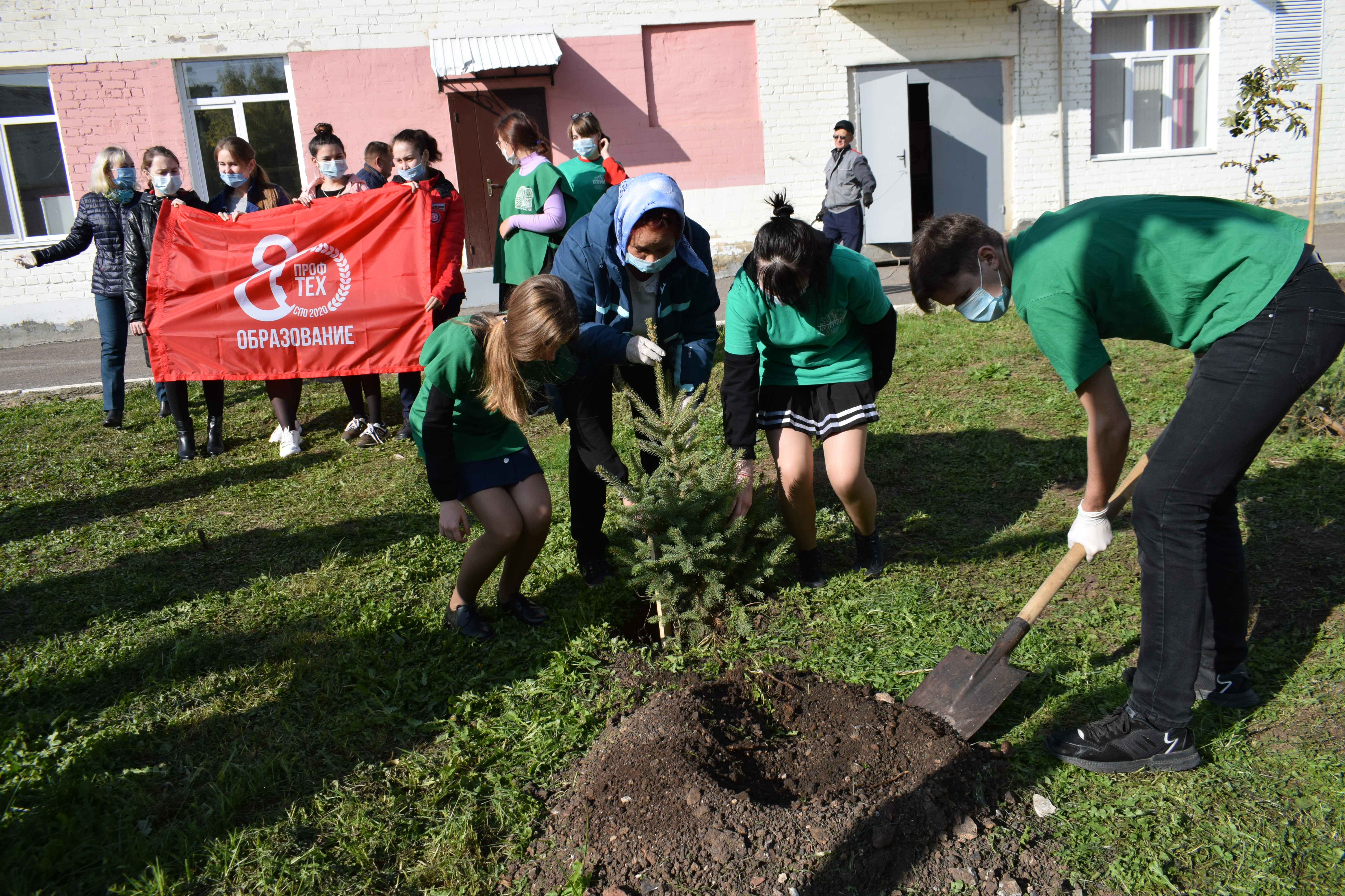 Сегодня коллектив студентов, преподавателей и ветераны колледжа приняли участие в высадке деревьев,приуроченной к 80- летию системы профессионально - технического образования в России.