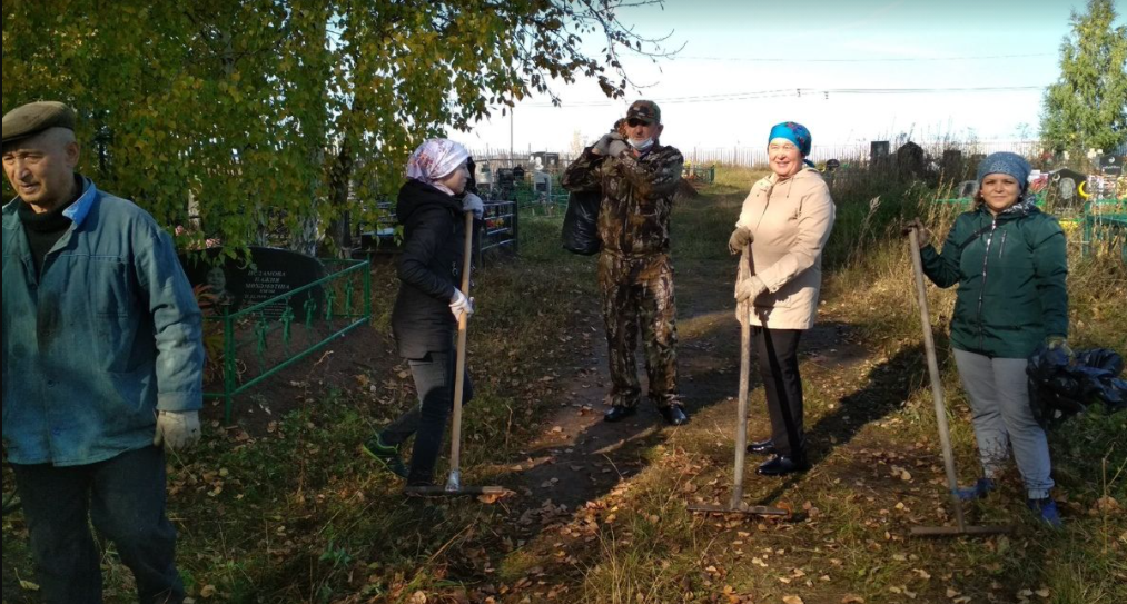Стояла прекрасная погода, каждый старался изо всех сил, чтобы внести свой вклад в доброе дело. В течение нескольких часов участники субботника очистили территорию кладбищ от мусора, опавших листьев, веток кустарников, привели в порядок территорию кладбища.