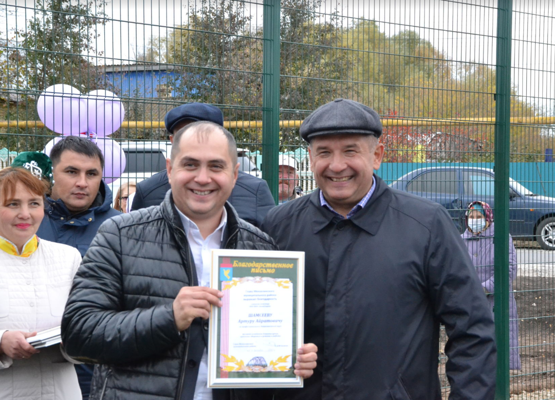 Состоялось награждение и работников: так, Почетной грамотой главы района награжден заместитель директора ООО ПКФ «Автострой» Игорь Фрикк, благодарственного письма главы района удостоились труженики «Автостроя»: главный инженер Артур Шамсеев, прораб Азат Бадретдинов, его сын мастер Артур Бадретдинов, а также плотник-бетонщик ООО «Инсаф» Фанис Хамидуллин.