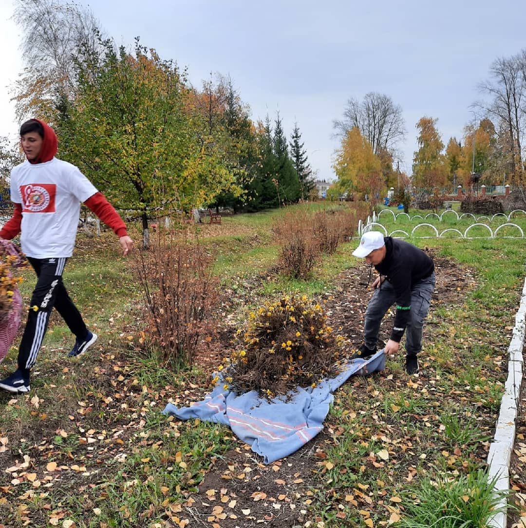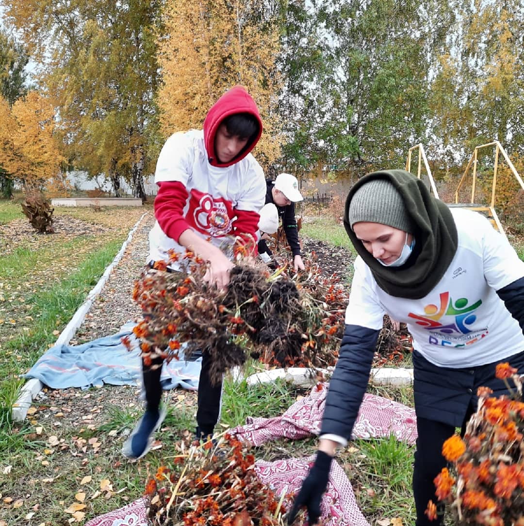 Молодая и неравнодушная молодежь убрали территорию социального учреждения от опавших листьев, скошенной и пожухлой травы.
