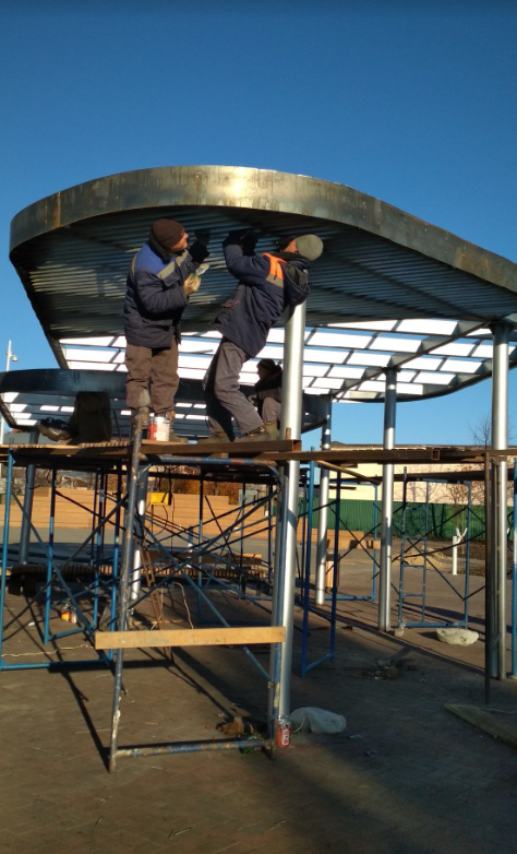 В сквере завершена установка светильников, установлены скамейки. Проделана большая работа по озеленению, установлены МАФы.