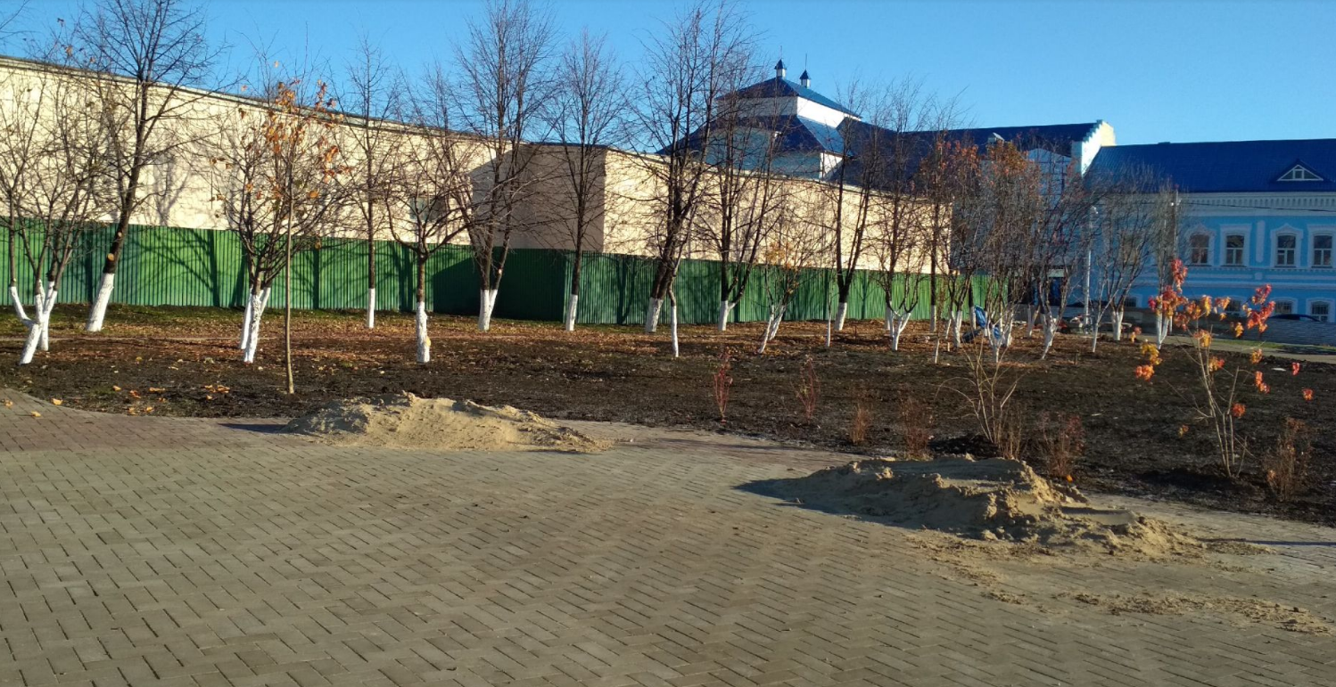 Пространство сквера разделено на различные функциональные зоны: и зеленая зона, и зона отдыха, и пешеходная зона. Сейчас здесь ведутся работы в этих зонах.