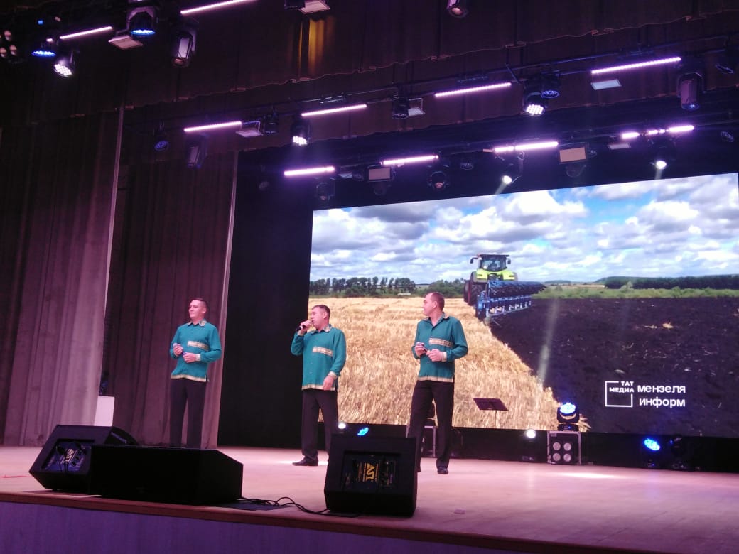 Внимание собравшихся на торжество привлекли видеосюжеты, подготовленные “Мензеля-информ”, в которых отражен самоотверженная деятельность сельских тружеников. Затем сцену заняли самодеятельные артисты.