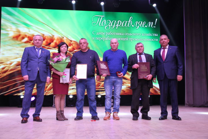 В завершение выступления Азат Хамаев и Айдар Салахов вручили почетные грамоты и благодарственные письма Министерства сельского хозяйства и продовольствия республики ряду передовиков труда, памятные знаки “100 лет образования ТАССР”, благодарственные письма Государственного Совета РТ, благодарственные письма муниципальных образований РТ, благодарственные письма главы района. Начальник Главного управления ветеринарии Кабинета Министров Республики Татарстан Алмаз Хисамутдинов в своем выступлении передал мензелинцам привет от министра сельского хозяйства РТ Марата Зяббарова: