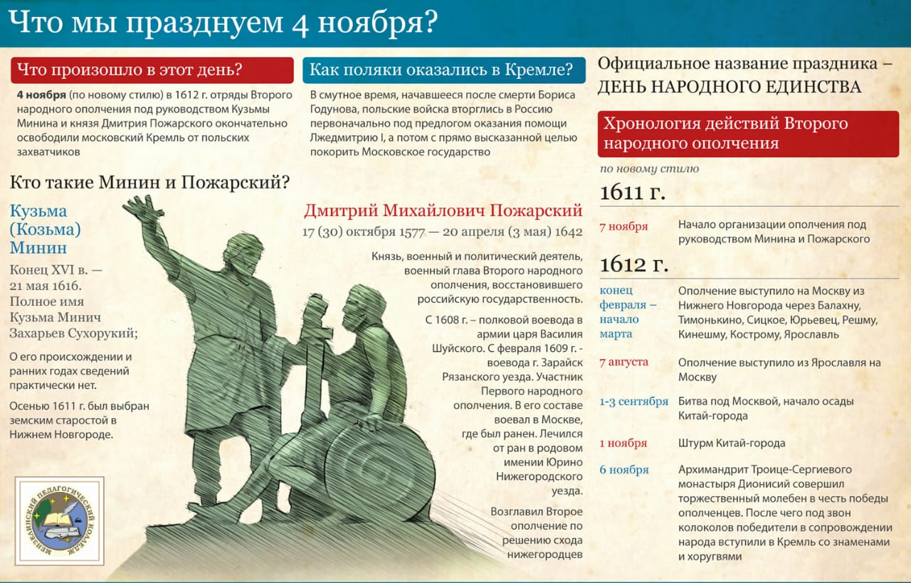 4 ноября вся наша Россия отмечает день «Народного Единства». Этот день занимает особое место среди государственных праздников современной России.
