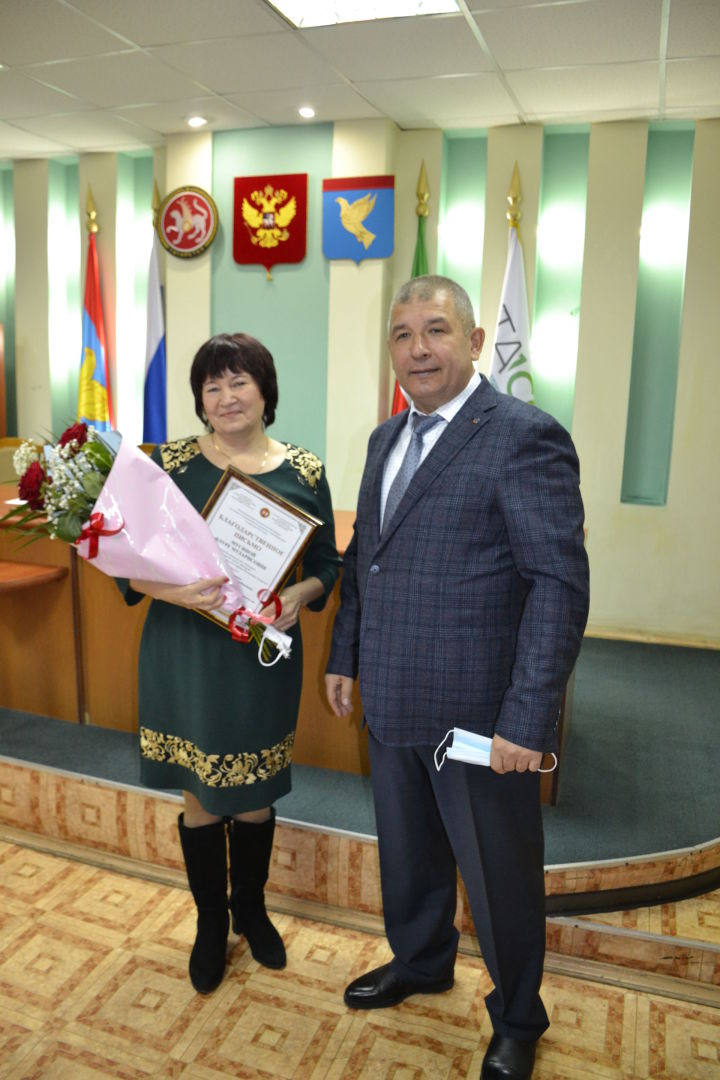 Сегодня во время рабочего совещания с участием руководителей районов глава района Айдар Салахов поздравил журналистку газеты “Минзәлә”-“Мензеля” Флуру Мусину, а также победителя республиканского конкурса “Лучший работник в сфере муниципального управления” в номинации “Правовое обеспечение деятельности органов местного самоуправления” Рузину Бадриеву и вручил им благодарственные письма Ассоциации “Совет муниципальных образований Республики Татарстан».
