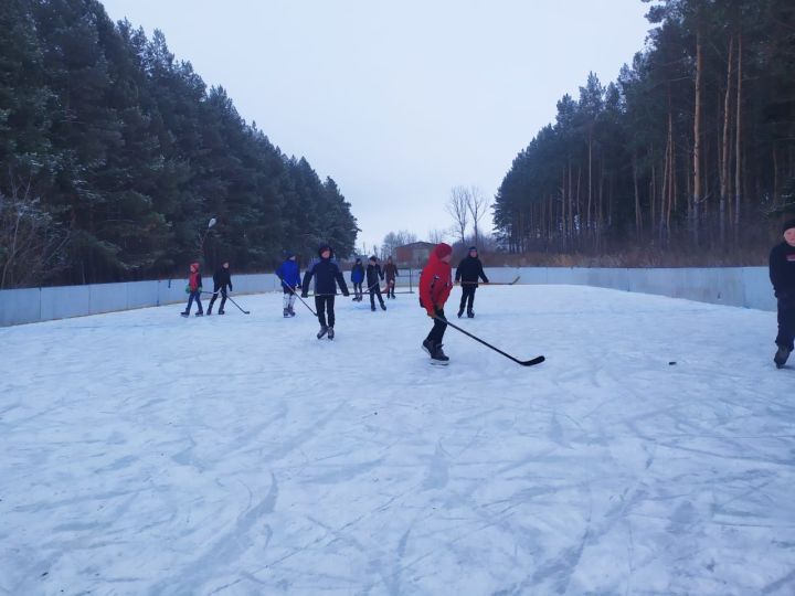 Салават Саматов из года в год берет под свой контроль заливку льда на катке. В изготовлении катка ему помогали и школьники. На изготовление катка ушло более 100 тонн воды. Толщина льда на катке 14 сантиметров. Хоккейная команда под его руководством готовится к большим играм.